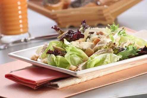 Ingredientes para 4 porciones: 1 atado de rúcula, 1/4 de repollo, 4 hojas de acelga, 30 gr de arándanos deshidratados, mani tostado c/n, aceite de maíz, jugo de limón, salsa de ajos asados, sal y pimienta.